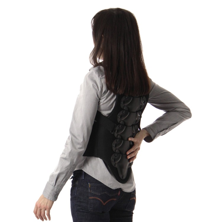 Il simulatore di dolori dorsali non provoca vero dolore, ma lo simula mediante una leggera stimolazione. Indossare il simulatore è molto semplice. Si indossa come uno zaino. Sono consegnati due simulatori in due misure.