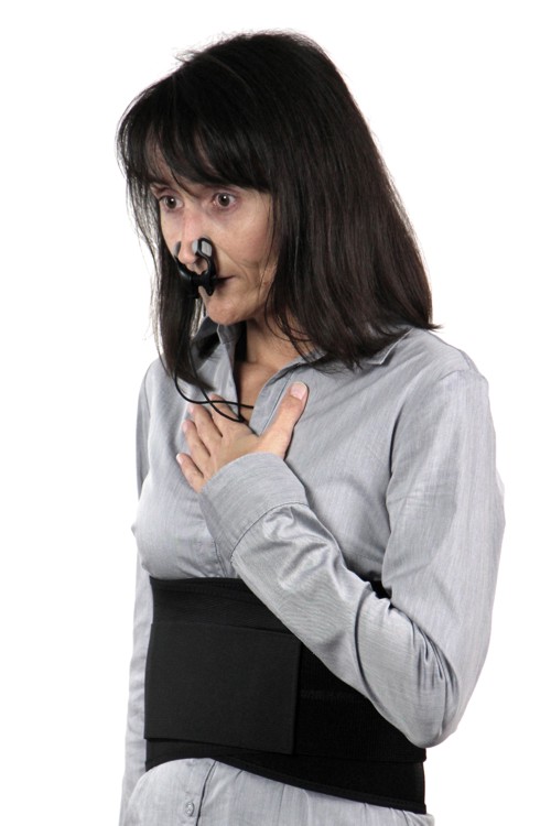 Il simulatore di BPCO è costituito da un bendaggio costale adattabile per limitare il volume polmonare e da una clip nasale facilmente regolabile per la riduzione del flusso d’aria durante l’inspirazione e l’espirazione. L’utilizzo è molto sicuro, in quanto in caso di eccessiva mancanza di respiro si può inspirare attraverso la bocca. L’applicazione è molto semplice e richiede solo pochi istanti. Il simulatore di BPCO è indipendente dalla taglia del soggetto.